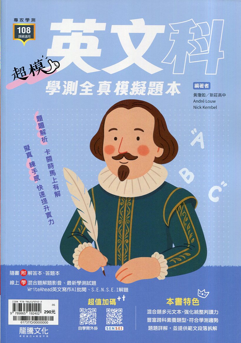 龍騰專攻學測英超模英文科學測全真模擬題本