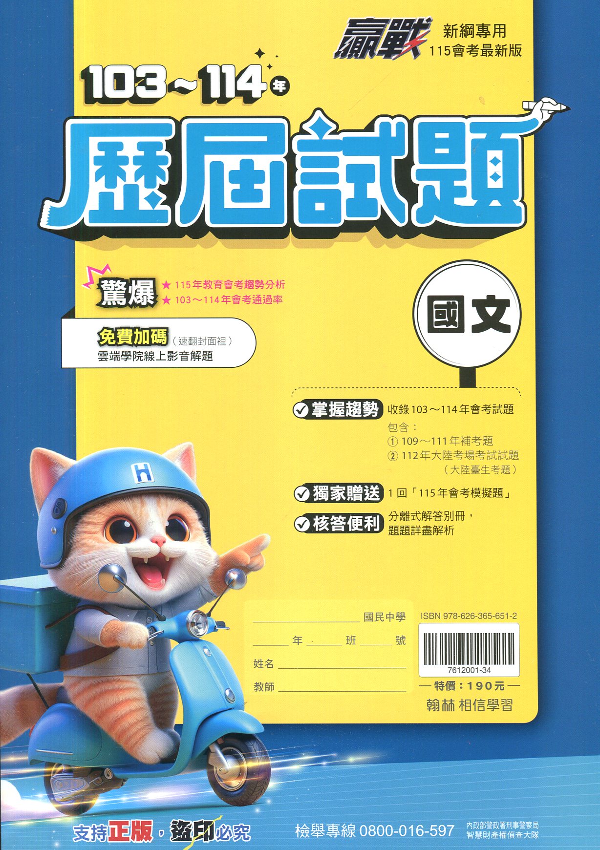 翰林115會考最新版贏戰103~114年歷屆試題國文