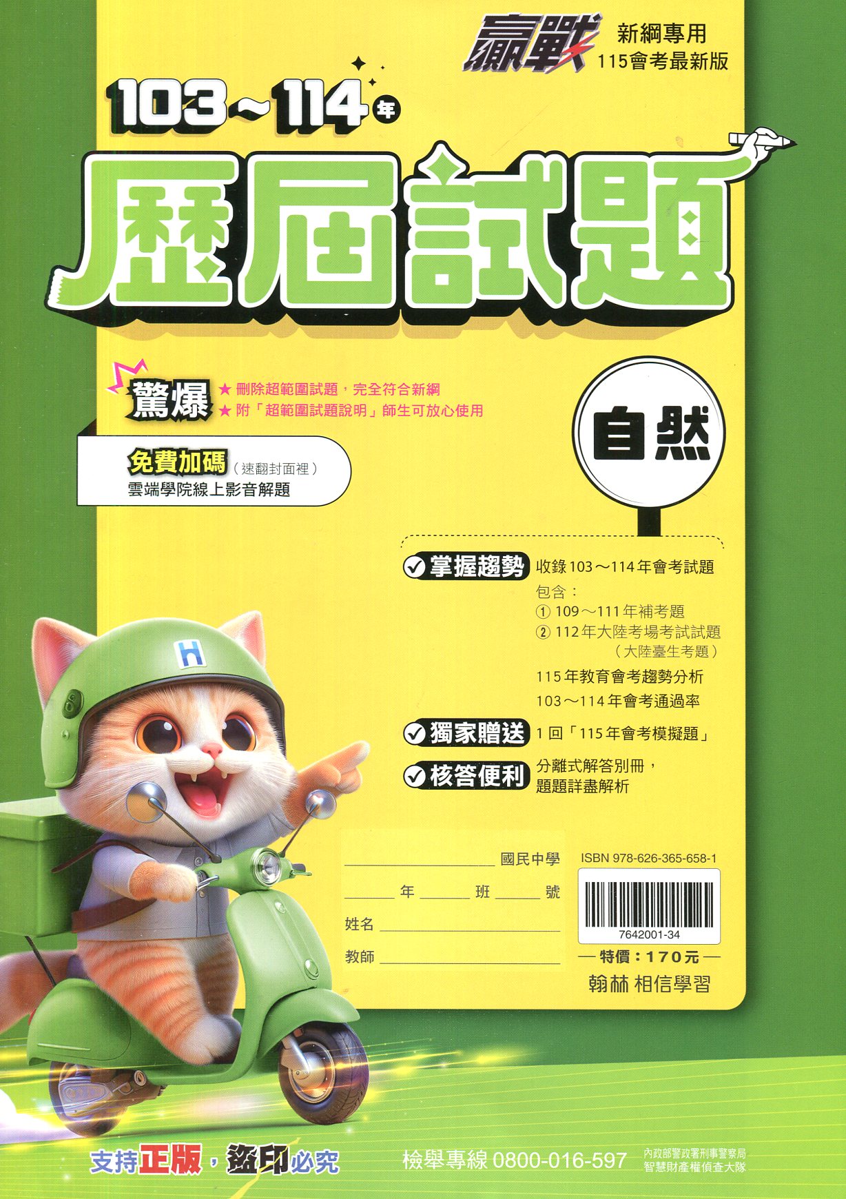 翰林115會考最新版贏戰103~114年歷屆試題自然
