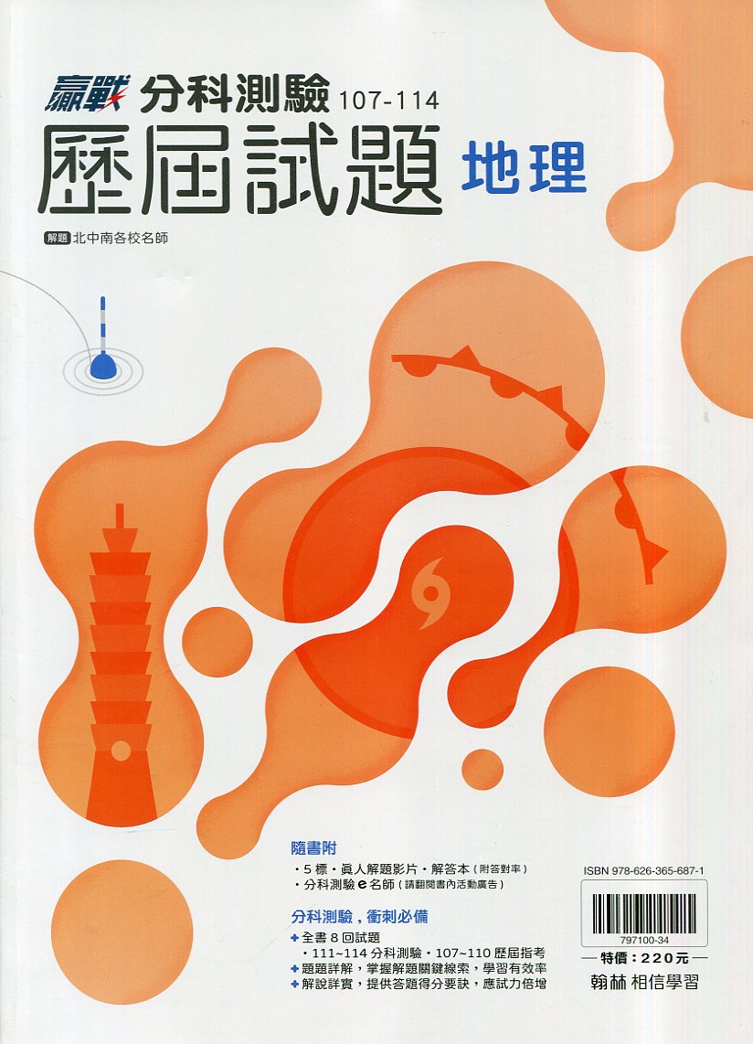 翰林107~114贏戰分科測驗歷屆試題地理