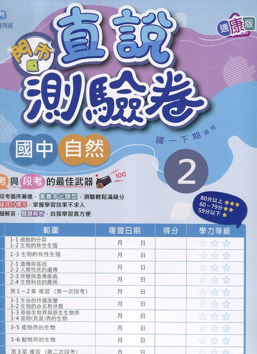 高升鑫直說測驗卷門市版國中適康版自然2