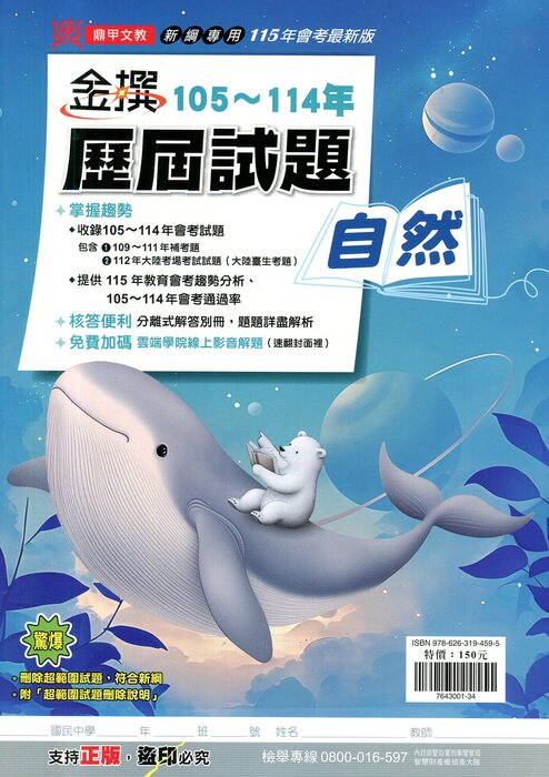 鼎甲115會考最新版金撰105~114年歷屆試題自然