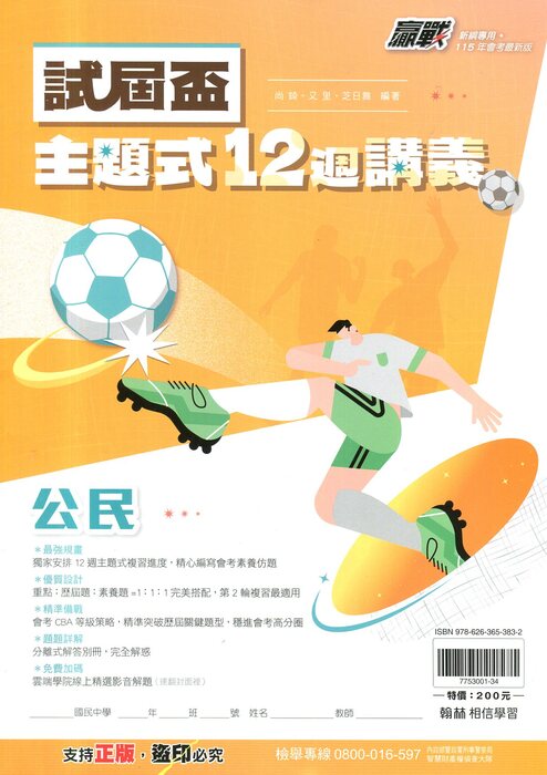 翰林115會考最新版贏戰試屆盃主題式12週講義公民