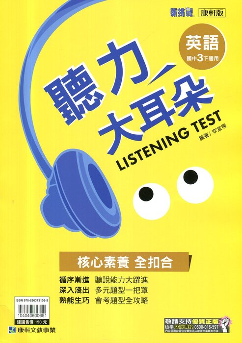 康軒新挑戰聽力大耳朵英語3下 (另售CD)