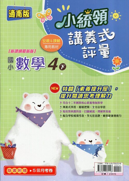 金安適南版小統領講義式評量數學4下安親&課輔專用教材