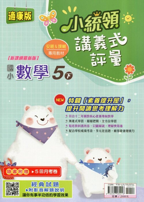 金安適康版小統領講義式評量數學5下安親&課輔專用教材