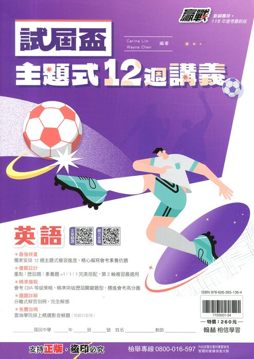 翰林115會考最新版贏戰試屆盃主題式12週講義英語